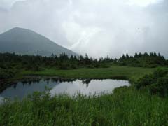 沼の向こうに八甲田山系を見渡せるが雲がかかっていて幾つかの山頂を見ることはできなかった。